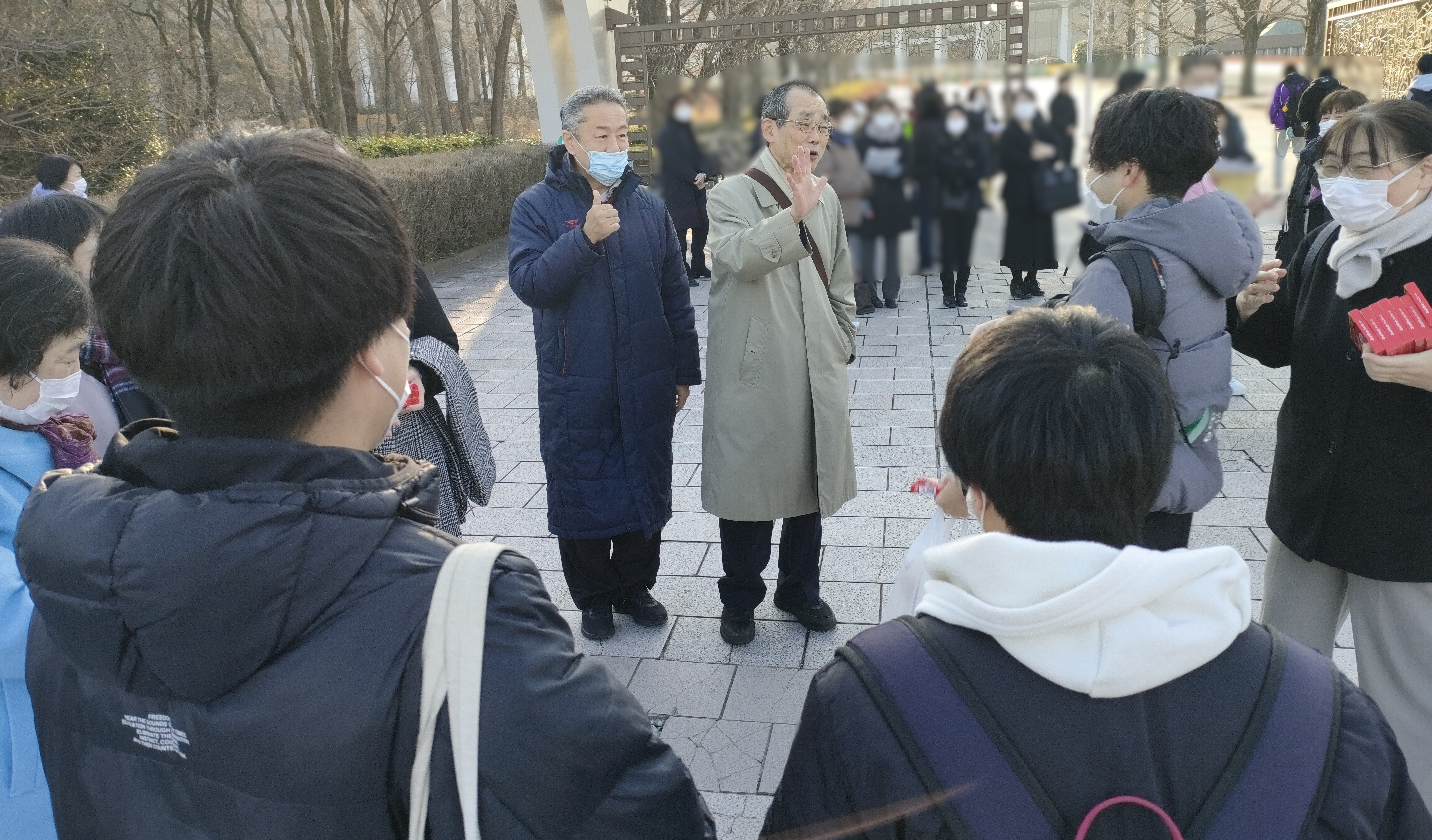 本学の看護教員も試験当日、学生の激励を試験会場前にて実施しました。