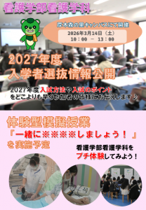 看護学部では【2027年度入学者選抜情報の公開】と【体験型模擬授業】を予定しています。